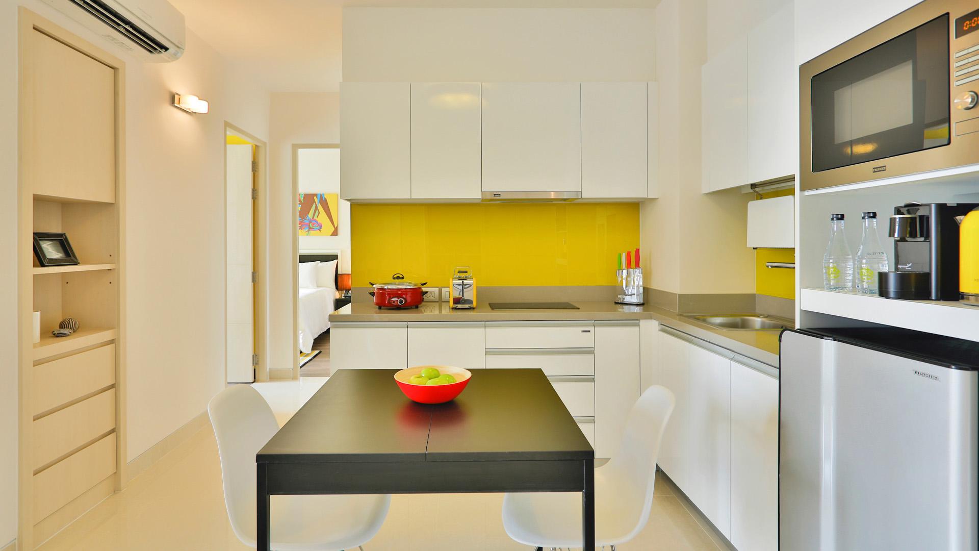我们的双卧套房拥有独立的卧室、舒适的起居室和可俯瞰宁静花园或庭院美景的大阳台,让您尽享舒适。厨房设施齐全,包括微波炉、电磁炉、冰箱、蒸汽火锅、咖啡机和家庭餐桌。您可以在主卧特大床上安然休息,次卧单人床让旅居更加便利。入住期间,您还可以使用免费无线网络连接,两间浴室令生活更方便。